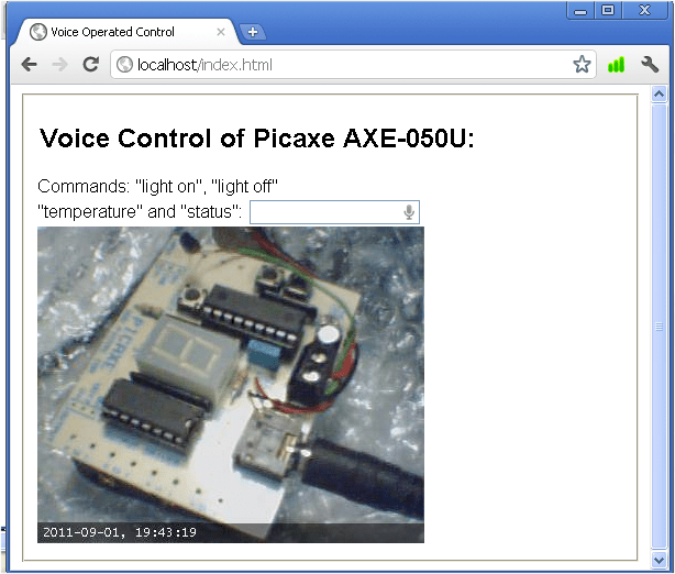 <font face="arial, verdana"><legend><h2>Voice Control of Picaxe AXE-050U:</h2></legend>