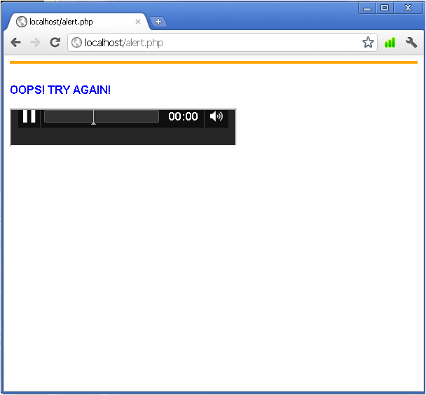 If the command is not recognised you will prompted to say it again, as page alert.php will open and you will hear the robotic voice from Google saying “Oops! Try again!”: