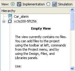 Car_alarm.vhd will now be part of our project Hierachy window: