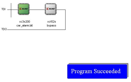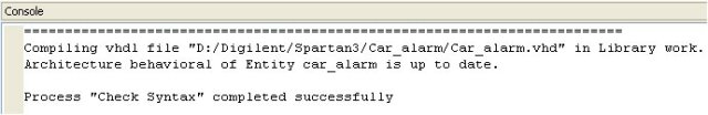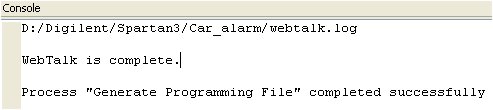 We have sucessfully programmed the Digilent Spartan 3 Starter kit board, and tested our Car Alarm circuit we designed in part I.