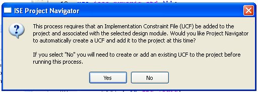 We will now add Constraints file in order to Synthetize next and implement the VHDL code. The Constraints file (UCF) will tell the Xilinx ISE the pins arrangements (I/O planning) of our Spartan 3 board.