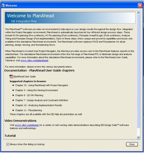 The window show the link of PlanAhead User Guide pdf which is worth reading. Press Close button.