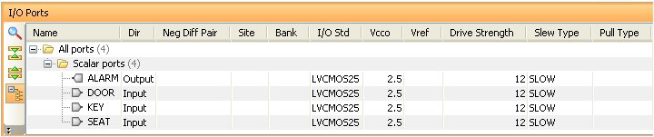 In PlanAhead within I/O Ports window expand the Scalar ports where you will see the 4 ports we defined in part I.