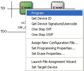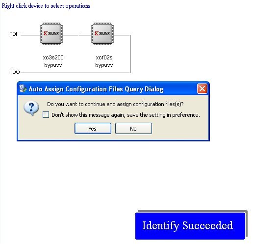 We will now program our Spartan S3 board. It is assumed that you have the Digilentboard duly configured to “see” the USB Jtag programming cable, and Digilent Adept 2 chaintool is installed in your PC.