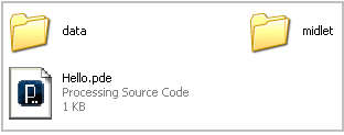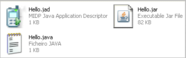 Now open the MIDlet folder, and you will see Hello.jad, Hello.jar and Hello.java files: