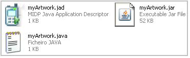 The MIDlet will be created and your PC´s MIDlet folder will open automatically to show myArtwork.jad, myArtwork.jar and myArtwork.java files: