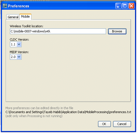 In the Preferences dialog box, go to the Mobile tab, and enter the location of the WTK: