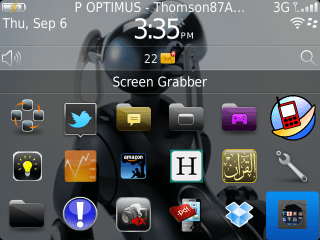 Install Jaredco‘s Screen Grabber in your Blackberry. After installing Screen Grabber and restarting your Blackberry, you will see in your Balckberry’s All group folder the Screen Grabber icon: