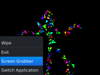 Now if you Run our app myArtwork, you will see the option to capture the screen if you click the Menu button in your Blackberry: