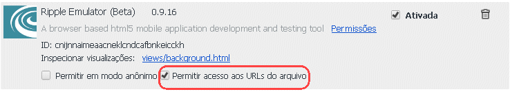 When enabled “Ripple” runs a web server on port 9910 of your computer. You will need to tweak Ripple in Chrome’s extensions (you can access “extensions” directly with pointing the Chrome browser to chrome://extensions). As shown in following image (in Portuguese, but I think it will be something similar in English) we have tweaked Ripple to view your PC’s URLs: