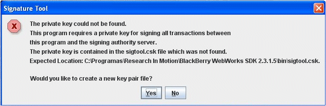 Note that SignatureTool started immediately and a popup window will open asking to generate a new set of signing keys in case you do not have these yet: