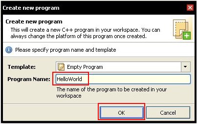 • Enter the name of the new program (e.g. “HelloWorld”), and click OK