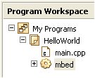 Program Workspace will show that mbed library has been added to HelloWorld program.
