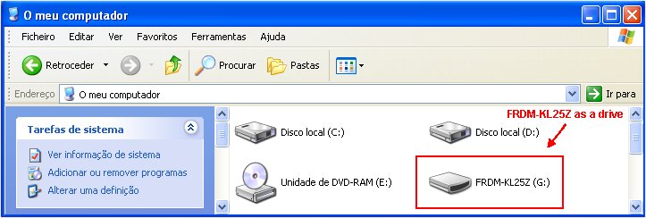 • FRDM-KL25Z behaves a drive, so you find it in My Computer of your PC.