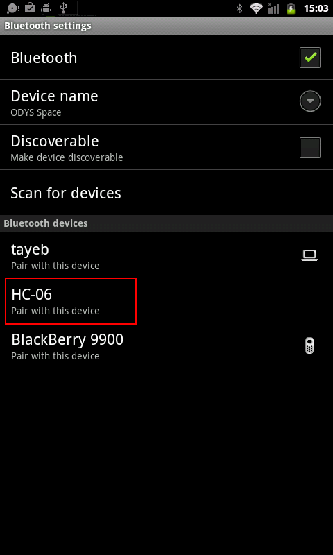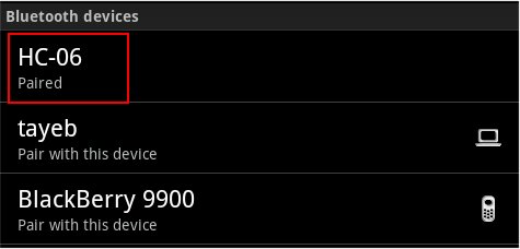 You will see that JY-MCU (named as HC-06) is paired: