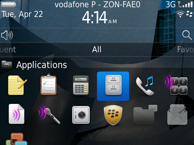 Now disconnect the USB cable between your Blackberry and your PC. In your Blackberry go to All group of folders, and choose Applications folder: