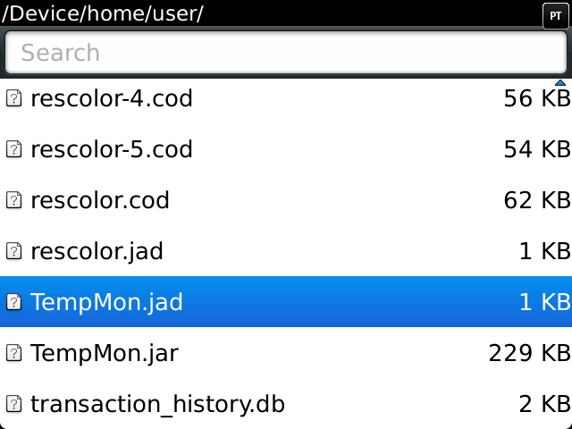 We are now ready to copy TempMon.jad and TempMon.jar into the Blackberry.