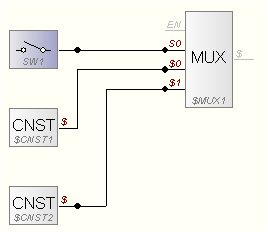 which will show circuit animation, and pointing a node with the mouse, you will see actual values there. The following image shows pin status $=26,1 on output pin of $MUX1: