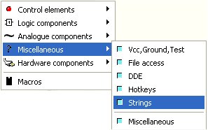 We will leave the toggle switch for now to be changed later and proceed with the data input defining them. The switch will behave as a simple Data Selector. In Miscellaneous choose Strings: