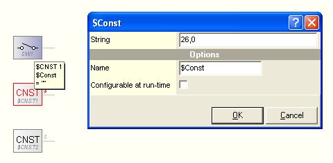 Click OK. Do the same with second Constant component CNST and write the value of String 26,1 which means PIN26 is ON, and click OK to close the pop up window.